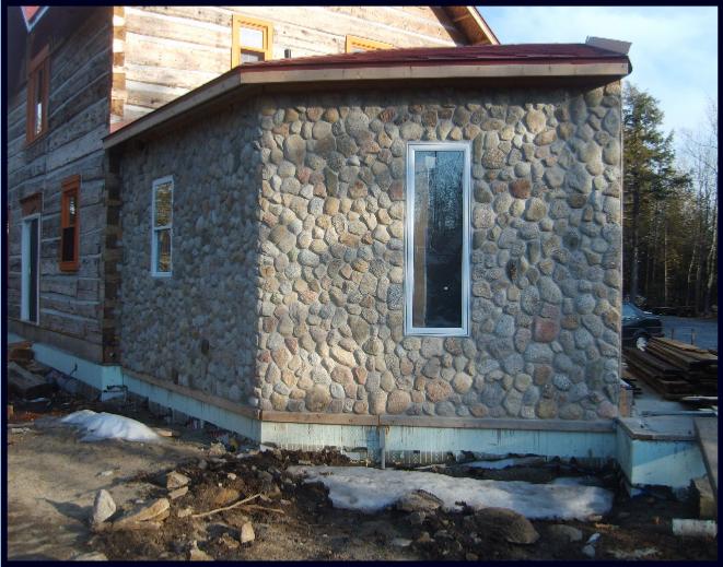 The common granite has been used in this area for centuries for foundations and ornamental from our local quarries. This same stone is in our ancient river beds. Multi Colour granite varies in light beige to white, pink and even to shades of salmon pink and pale yellow to dark coarse dark specks in the quartz fieldspar mix that makes up this granite. It is the right combination to a log home foundation and fireplace.